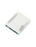 El RB951G-2HnD es un SOHO Gigabit AP inalámbrico con una nueva generación de CPU Atheros y más potencia de procesamiento. Tiene cinco puertos Gigabit Ethernet, un puerto USB 2.0 y un AP inalámbrico 802.11b / g / n de 2,4 GHz de alta potencia con antenas incorporadas. En comparación con el modelo anterior RB751G-2HnD, tiene una CPU más potente de 600Mhz (en lugar de 400Mhz) , más RAM: 128 MB en lugar de 64 MB, el mismo factor de forma y precio. El dispositivo es muy pequeño y se verá bien en cualquier hogar u oficina, se proporcionan orificios de anclaje para montaje en pared. El paquete contiene RouterBOARD 951G-2HnD en una caja de plástico y adaptador de corriente.